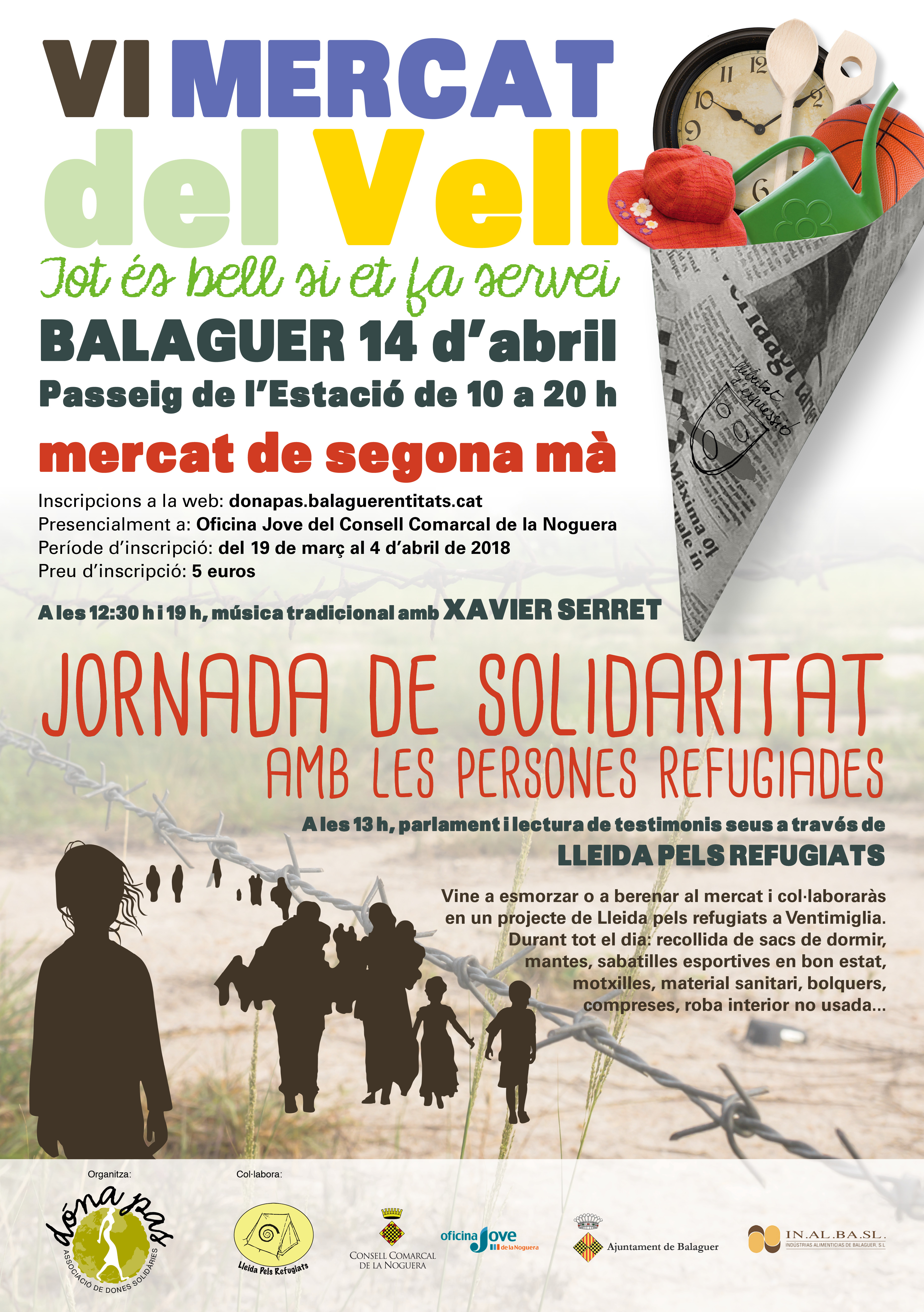 El VI Mercat del Vell previst per aquest dissabte a Balaguer, canvia de data en motiu de la previsió de pluja. Des de l'organització s'ha traslladat aquest mercat per al pròxim dissabte dia 14 d'abril.