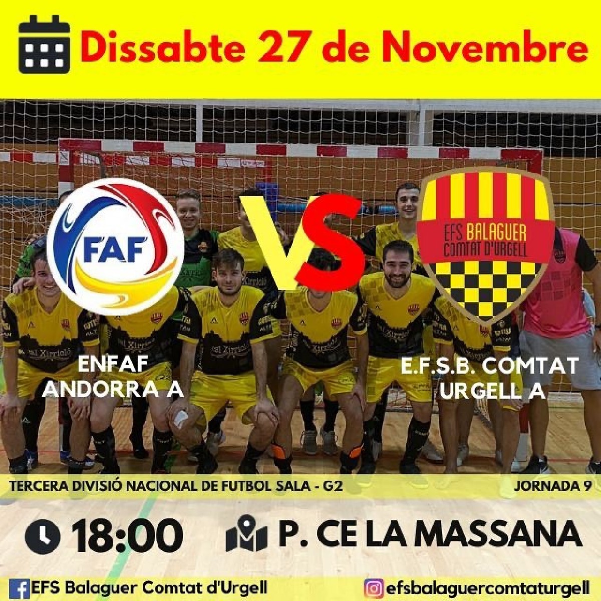 El Comtat d'Urgell de futbol sala visitarà aquest dissabte a la tarda la pista de l'Andorra A, cuer de la categoria, en un partit per recuperar el ritme de joc. A Balaguer es presentaran tots els equips de l'escola el diumenge.