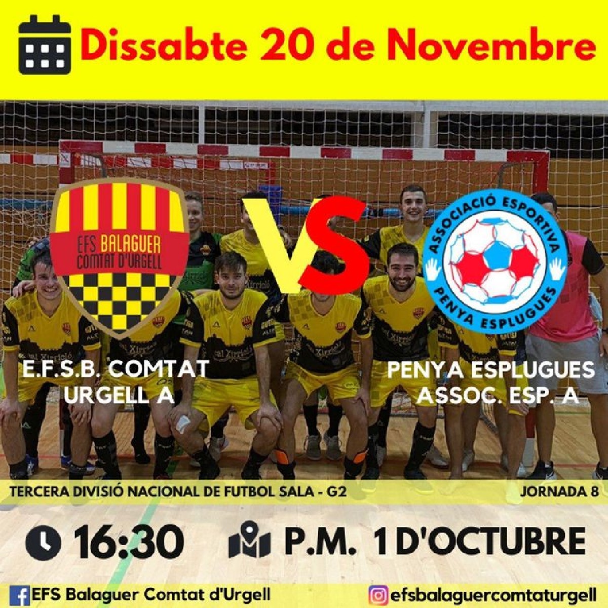 El Comtat d'Urgell de futbol sala rep aquest dissabte al 1r d'Octubre a la Penya Esplugues, líder de la categoria, que només ha perdut 1 partit des de l'inici de lliga