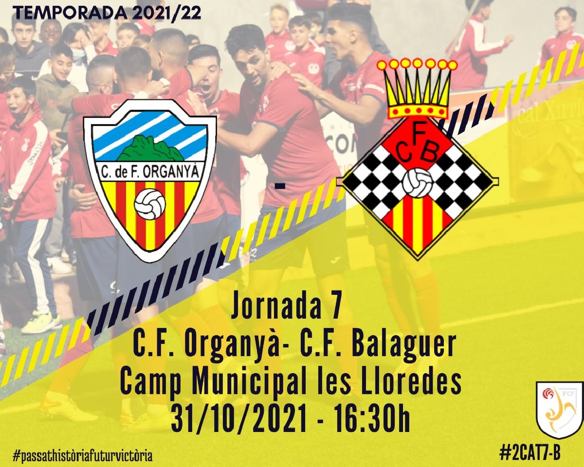 El Club Futbol Balaguer disputa aquest diumenge a la tarda la 7a jornada de lliga visitant el camp de l'Organyà. El Balaguer defensarà la primera posició de la taula classificatòria contra un rival assequible