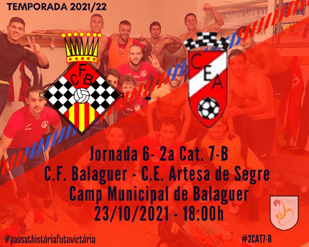 El Club Futbol Balaguer afronta aquest dissabte la 6a jornada de lliga en que rebrà la visita al municipal del líder, l'Artesa de Segre. El partit serà a les 6 de la tarda, i a les 4 es presentaran els 20 equips que formen part del club