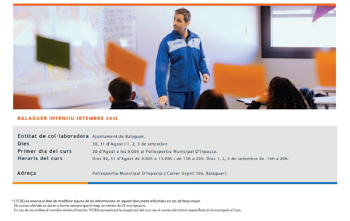 La ciutat de Balaguer acollirà a finals d'agost i inicis de setembre un curs de nivell 0 per a entrenadors de bàsquet, i a mitjans de setembre es faran uns tallers també de nivell 0