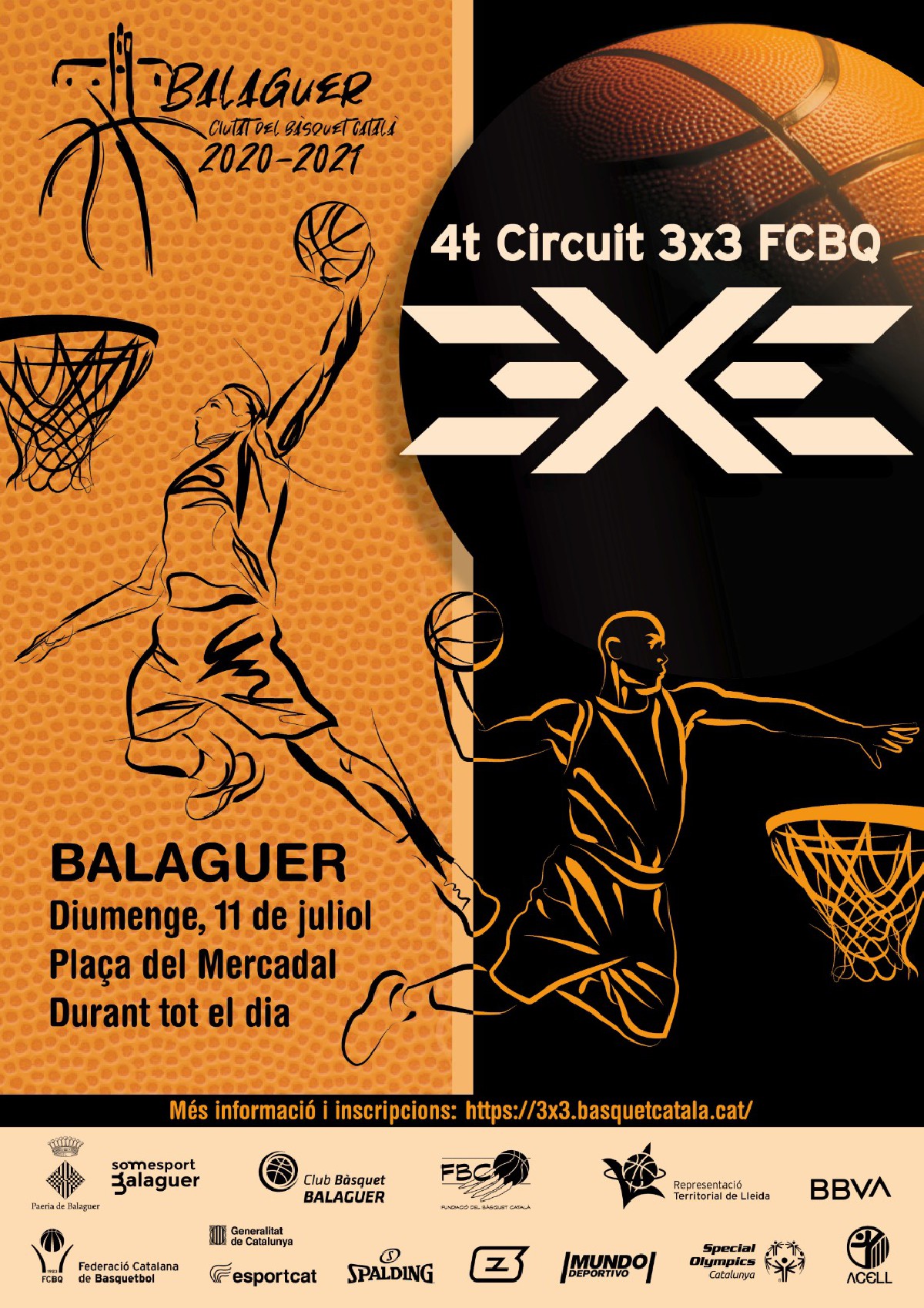 Balaguer, Ciutat del Bàsquet Català 2020-21, acull aquest diumenge la 4a edició del circuit català oficial 3x3 FCBQ. Durant el dia, es disputen 6 partits simultanis en les 6 pistes habilitades, 4 al Mercadal i 2 a la Plaça Comtes d'Urgell