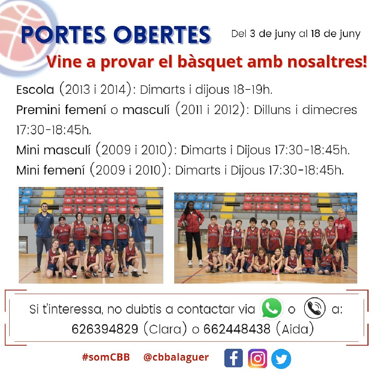 El Club Bàsquet Balaguer ofereix jornades de portes obertes fins al 18 de juny per donar l'oportunitat a tots els nens i nenes que ho desitgin, a provar el món del bàsquet