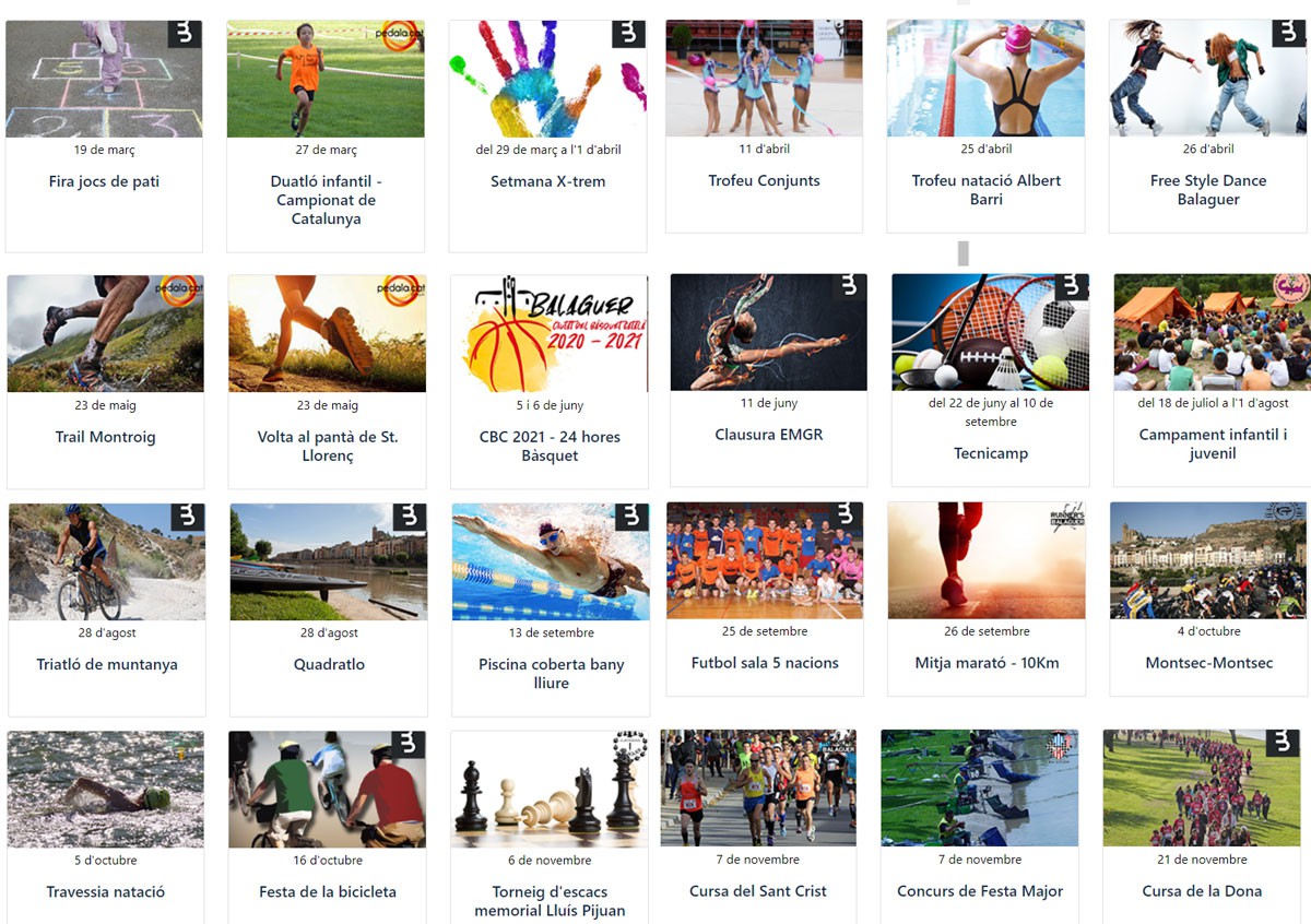 Les entitats esportives de Balaguer es preparen amb il·lusió i ganes de reprendre el calendari esportiu. L'Àrea d'Esports de la Paeria ha fet públic el calendari i les activitats confirmades per aquest any 2021