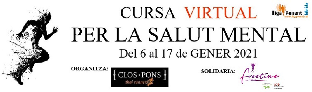 La Cursa Virtual per la Salut Mental, nova cita atlètica que servirà per posar en marxa la Lliga Ponent Híbrida. Se celebra fins al 17 de gener sota l'organització conjunta de Clos Pons Thai Runners i Iter5