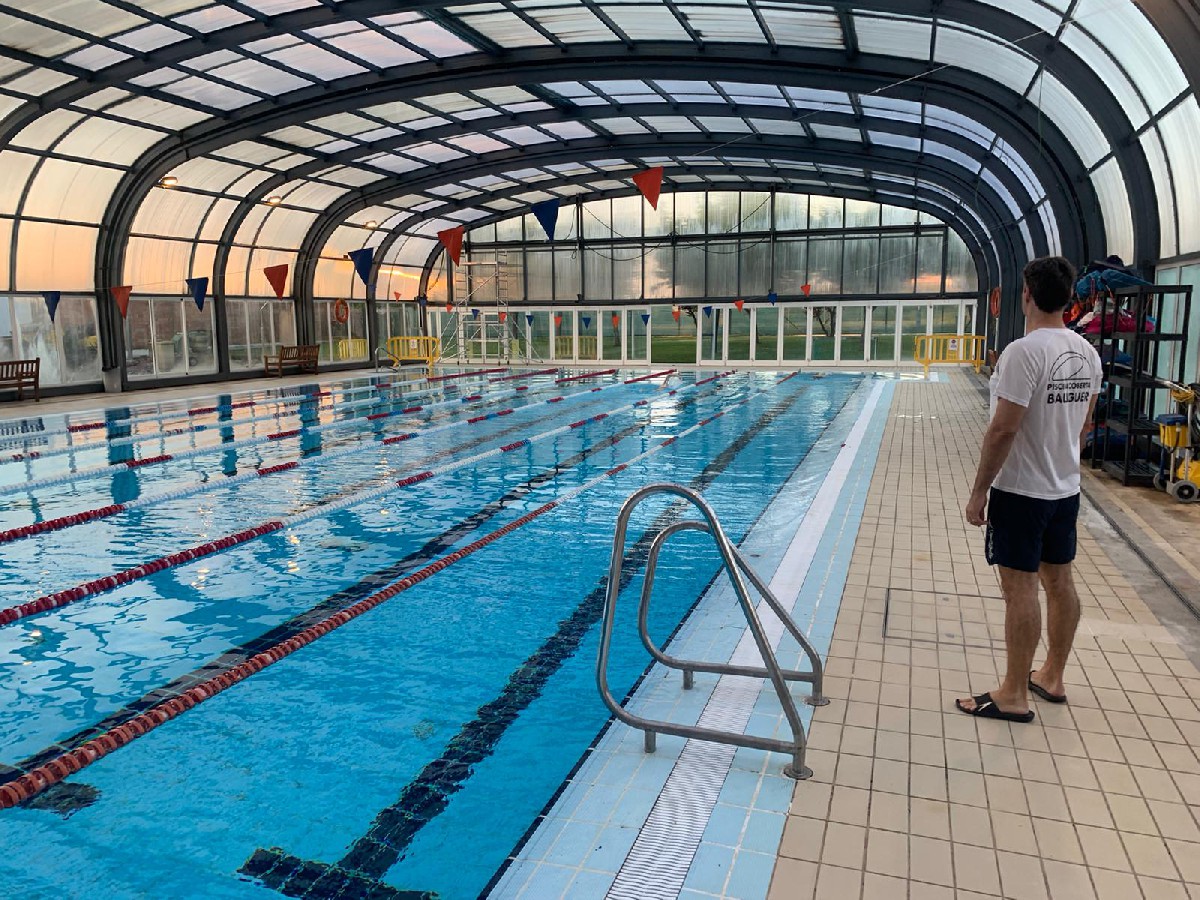 La piscina coberta de Balaguer reprèn l'activitat de bany lliure en fase 1 de desescalada. Els primers usuaris ocupen els carrers disponibles des de primera hora del matí.