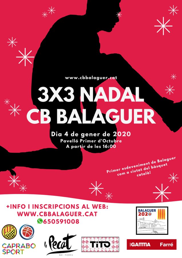Arriba aquest dissabte dia 4 el tradicional torneig de 3x3 de Nadal de Bàsquet del Club Bàsquet Balaguer. Aquest any a més serà el primer acte com a 'Balaguer ciutat del bàsquet català 2020'.