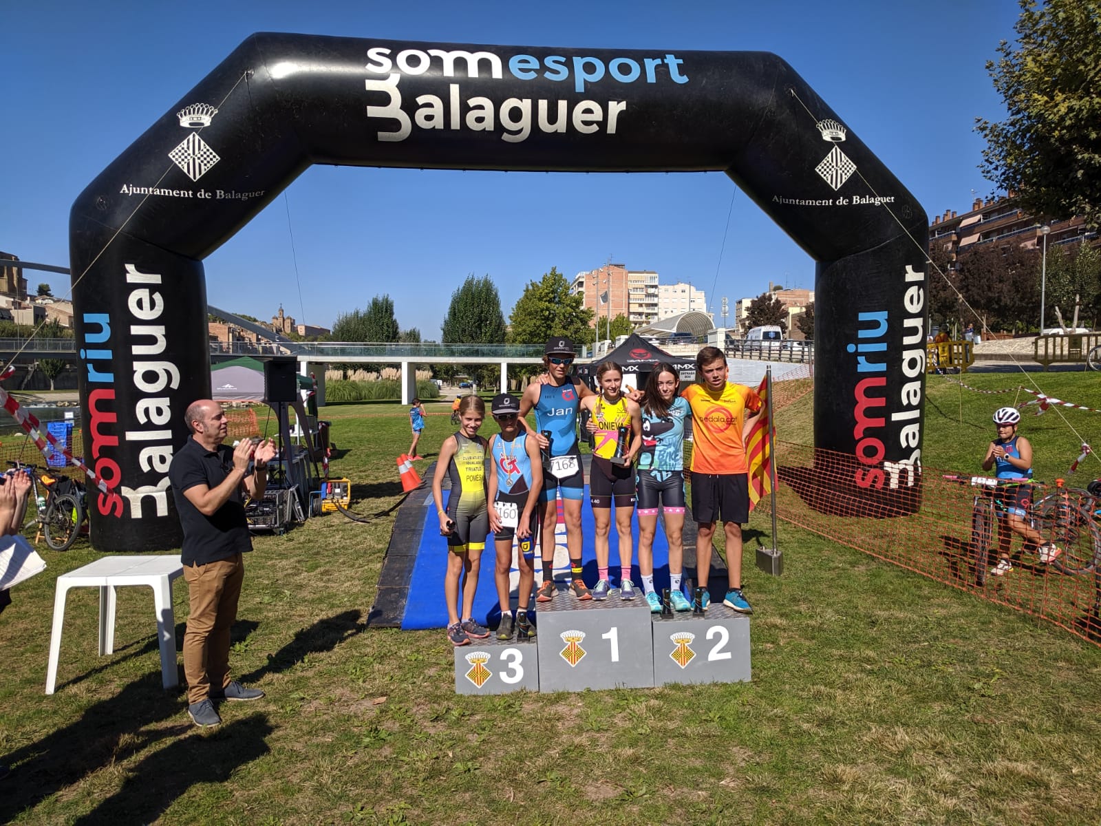 Jan Gallardo i Zoe Escobar en infantil i Marc Navarro i Aina Company en aleví s'adjudiquen la Duatló de Balaguer, campionat de Catalunya, disputada aquest dissabte.