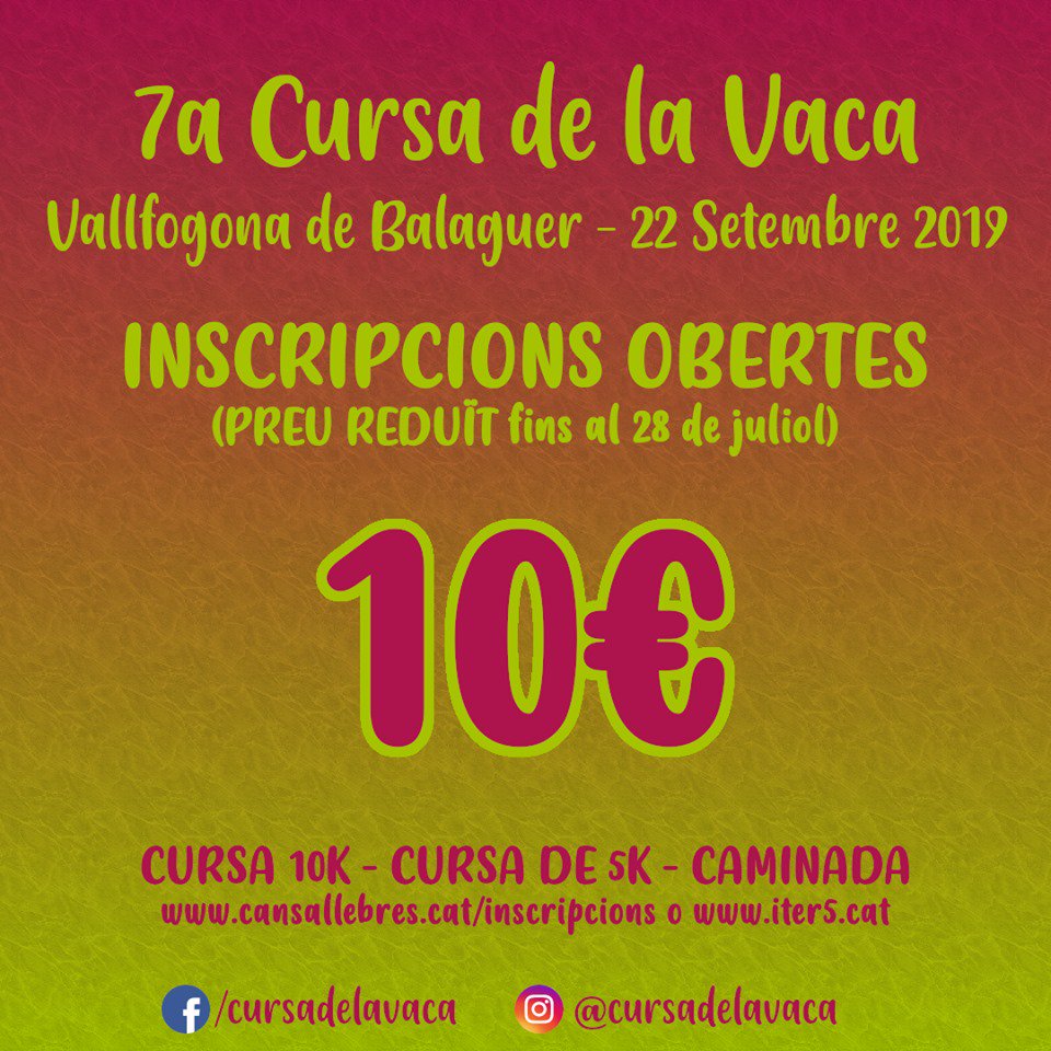 La Cursa de la Vaca de Vallfogona de Balaguer obre inscripcions per a la seva setena edició. Es farà el diumenge 22 de setembre i inclourà com és habitual modalitats de 10 i 5 km a més d'una caminada popular.