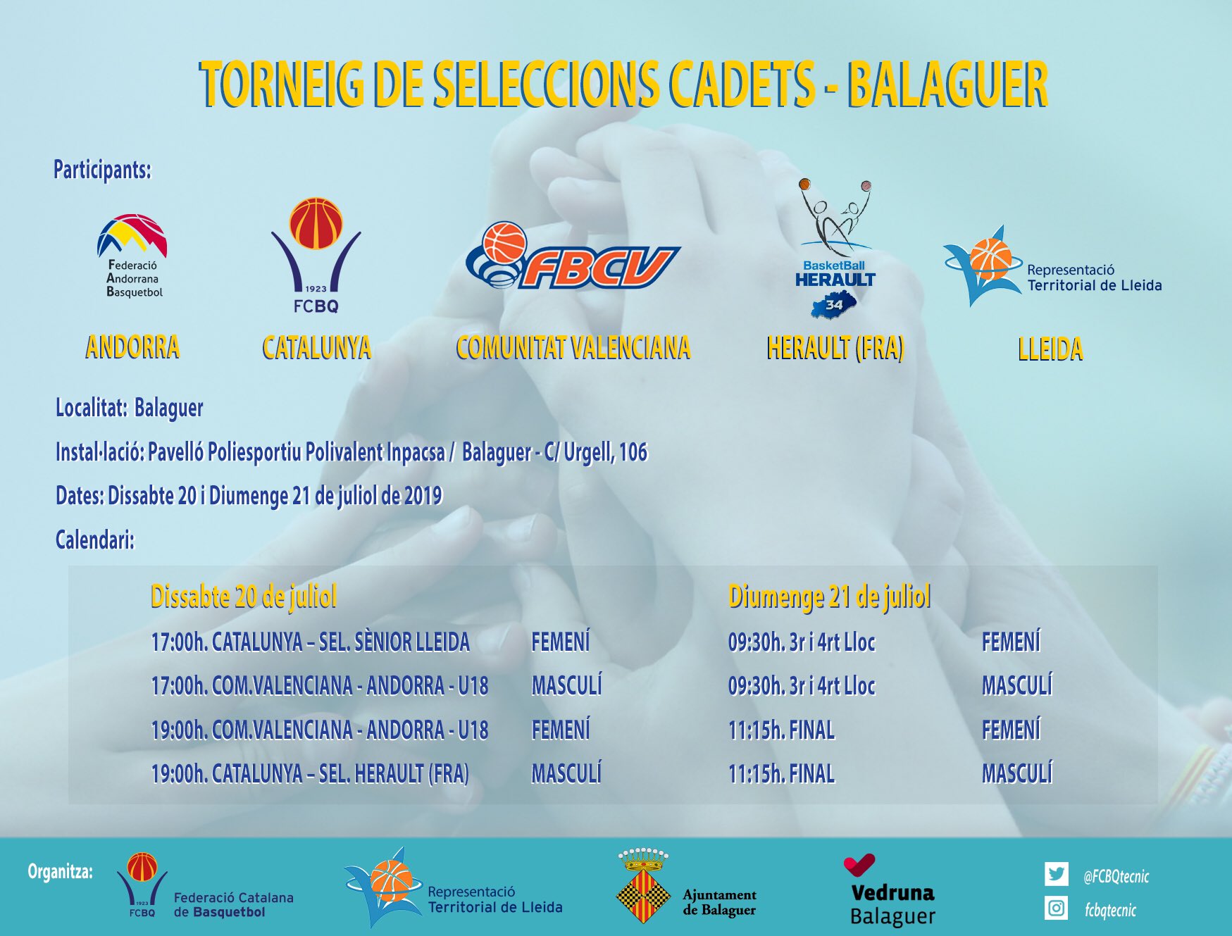 Aquest cap de setmana Balaguer serà escenari del Torneig de Seleccions Autonòmiques Cadet de Bàsquet. Està organitzat per la Federació Catalana de Bàsquet i hi participaran equips d'Andorra, Comunitat Valenciana, Herault i Catalunya.