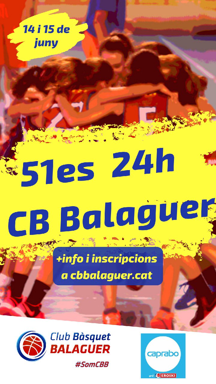 Els dies 14 i 15 de juny tindran lloc les 24 Hores de Bàsquet a Balaguer. La cita arriba a la 51a edició i comptarà amb competicions d'equips de bàsquet des de Babys fins a Sèniors d'escoles de la ciutat i comarca