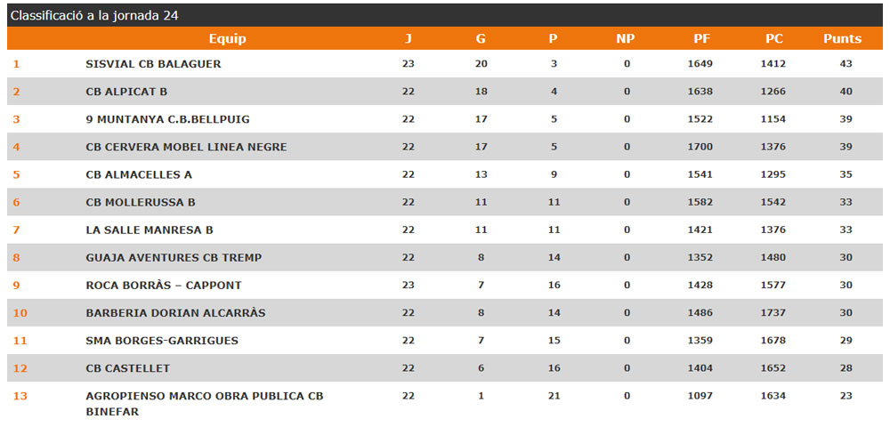 El Sisvial del Club Bàsquet Balaguer va aconseguir la victòria per la mínima 59 a 58, a la pista de l'Alpicat i és a punt de ser campió de lliga. Les noies del Q2 Consultors van guanyar de 2 a Lliçà d'Amunt i aspiren a la Final 4.