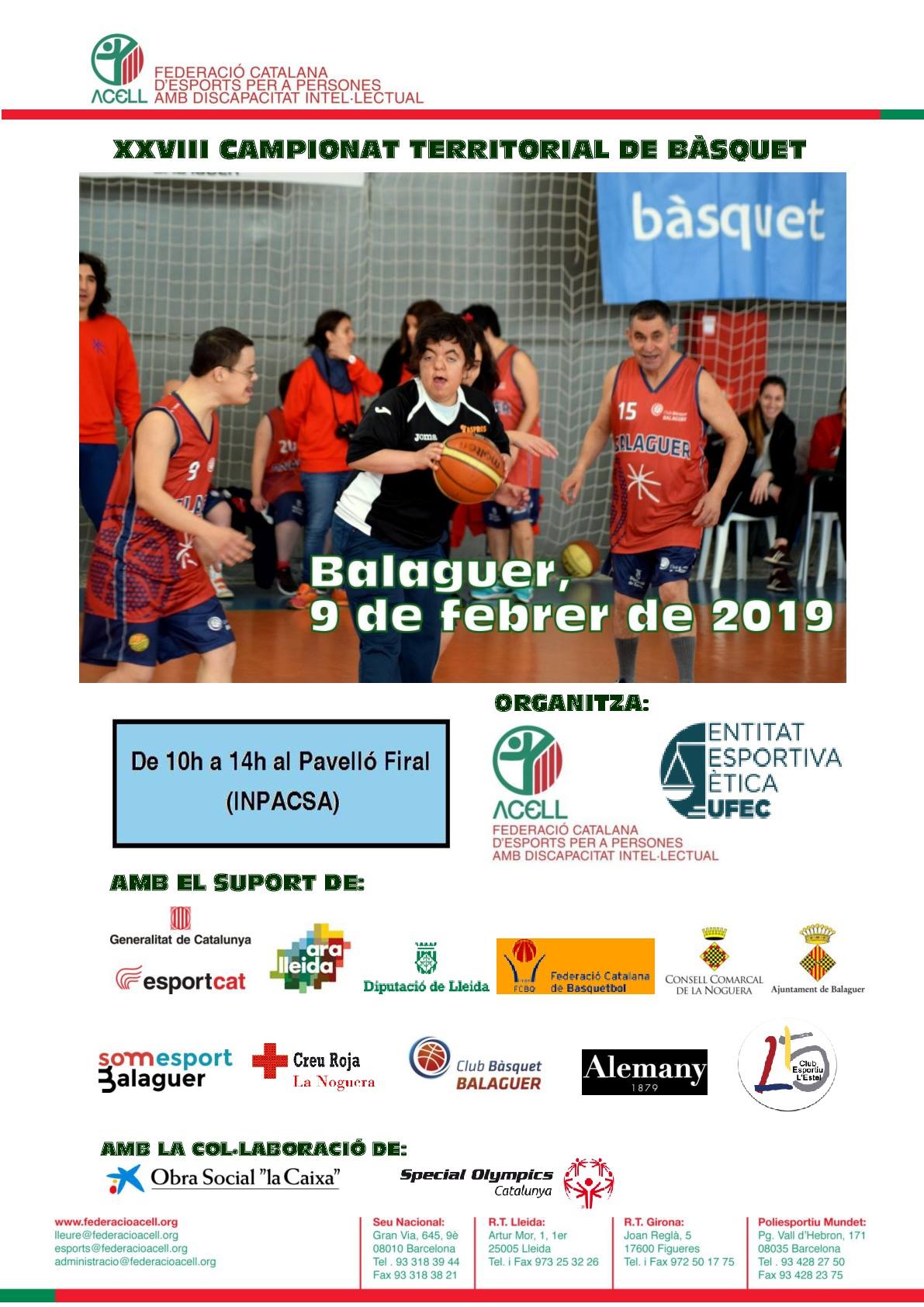 Balaguer acollirà el proper dissabte 9 de febrer el XXVIII Campionat Territorial de Bàsquet organitzat per ACELL Lleida. Hi participaran 173 persones provinents de 10 clubs diferents i d'Special Olympics Andorra