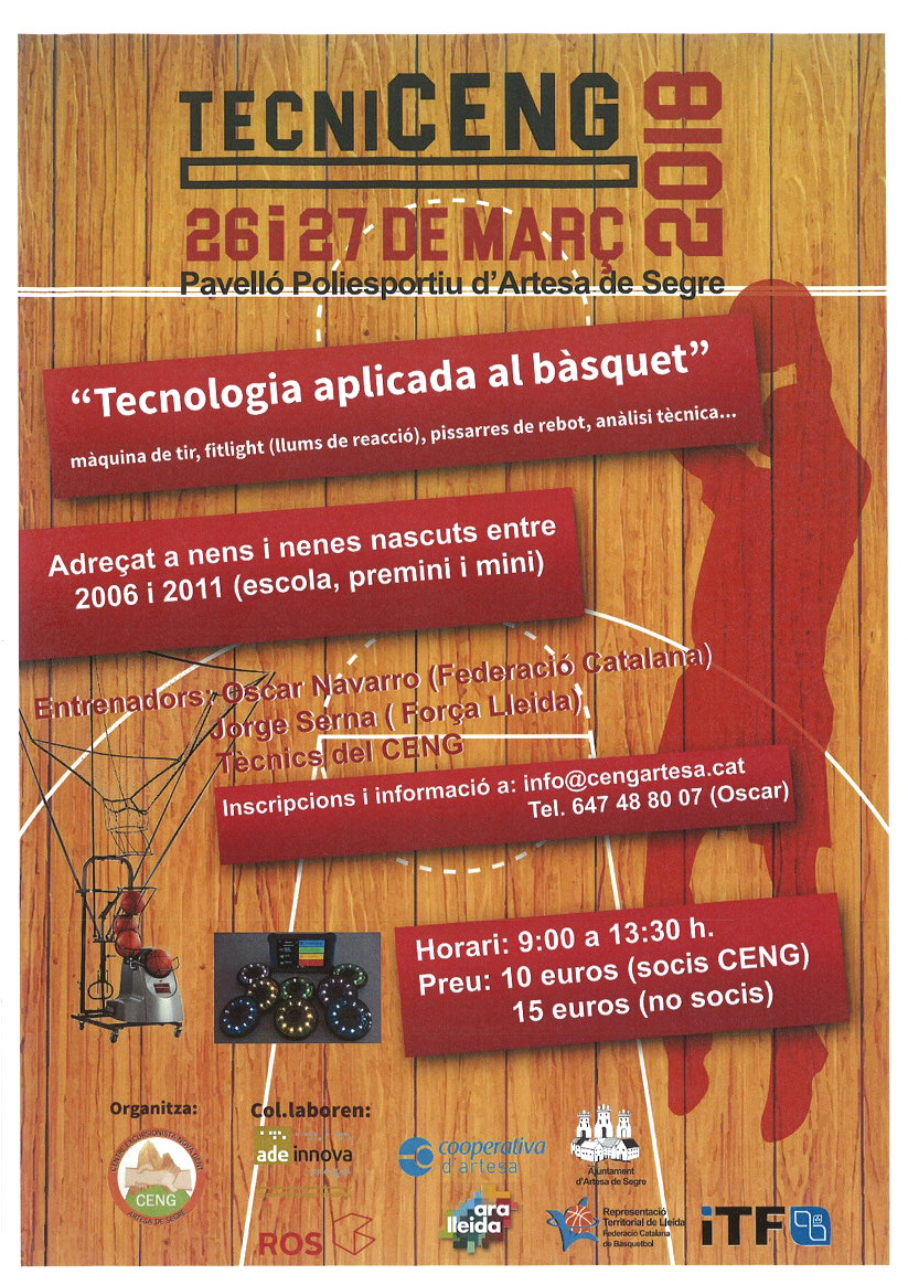 El CENG d'Artesa de Segre ha organitzat per la setmana que ve el TecniCeng 2018. Es tracta d'unes jornades de tecnologia aplicada al bàsquet adreçades a nens i nenes de categories escola, premini i mini.