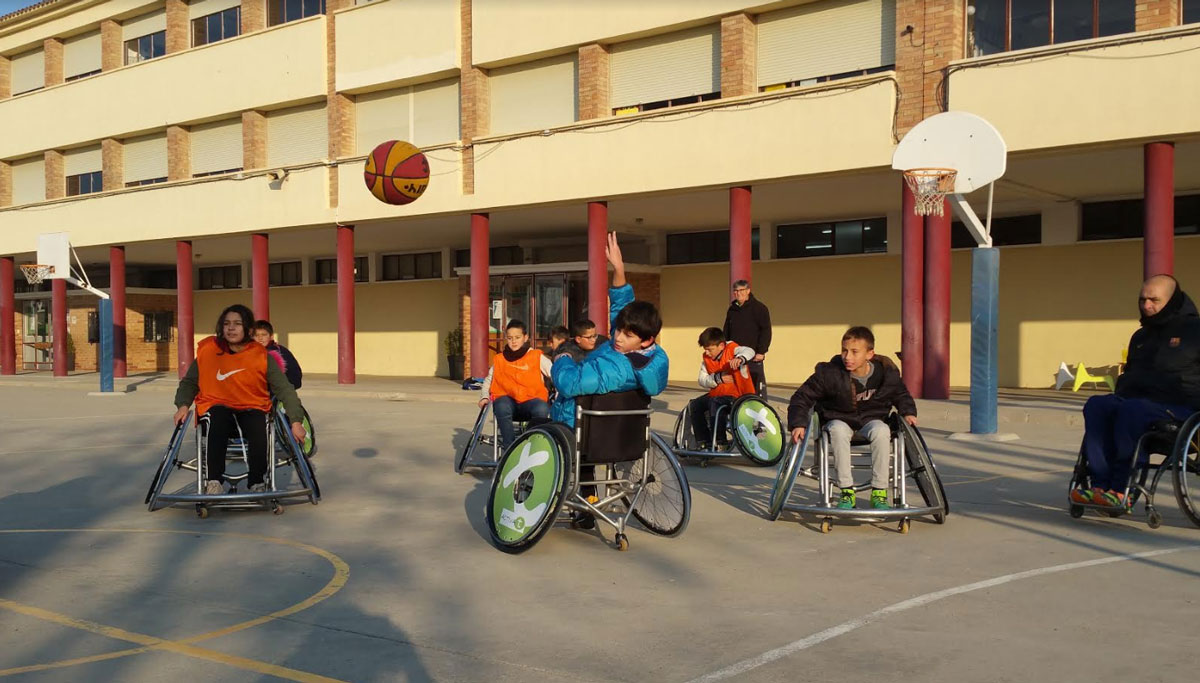 Els alumnes de cinquè de Primària de l'escola Gaspar de Portolà participen en un taller d'esport inclusiu per crear-los consciència i comprensió envers les persones amb discapacitat.