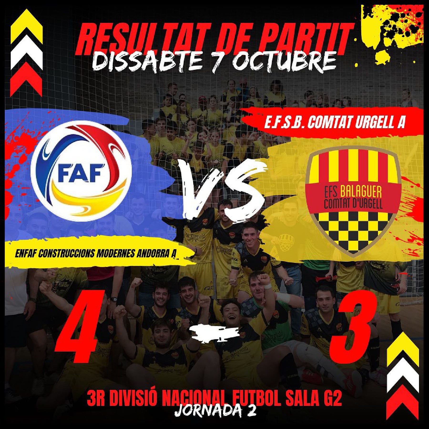 Mal resultat per al Comtat d'Urgell de futbol sala, que ha perdut aquest dissabte per 4 a 3 contra l'Andorra, en un partit que els locals van capgirar a 2 minuts del final