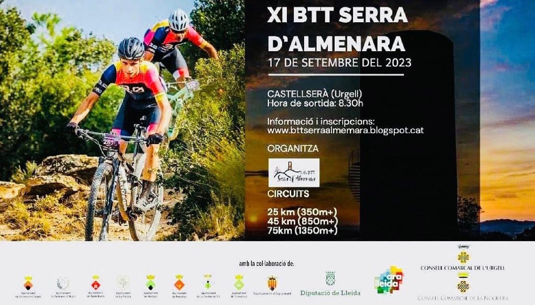 La BTT Serra d'Almenara celebra aquest diumenge l'11ª edició, que sortint de Castellserà, recorrerà els termes de municipis com Penelles, Bellcaire, La Sentiu, Montgai i Bellmunt. Hi participaran més de 300 bikers i encara queden places