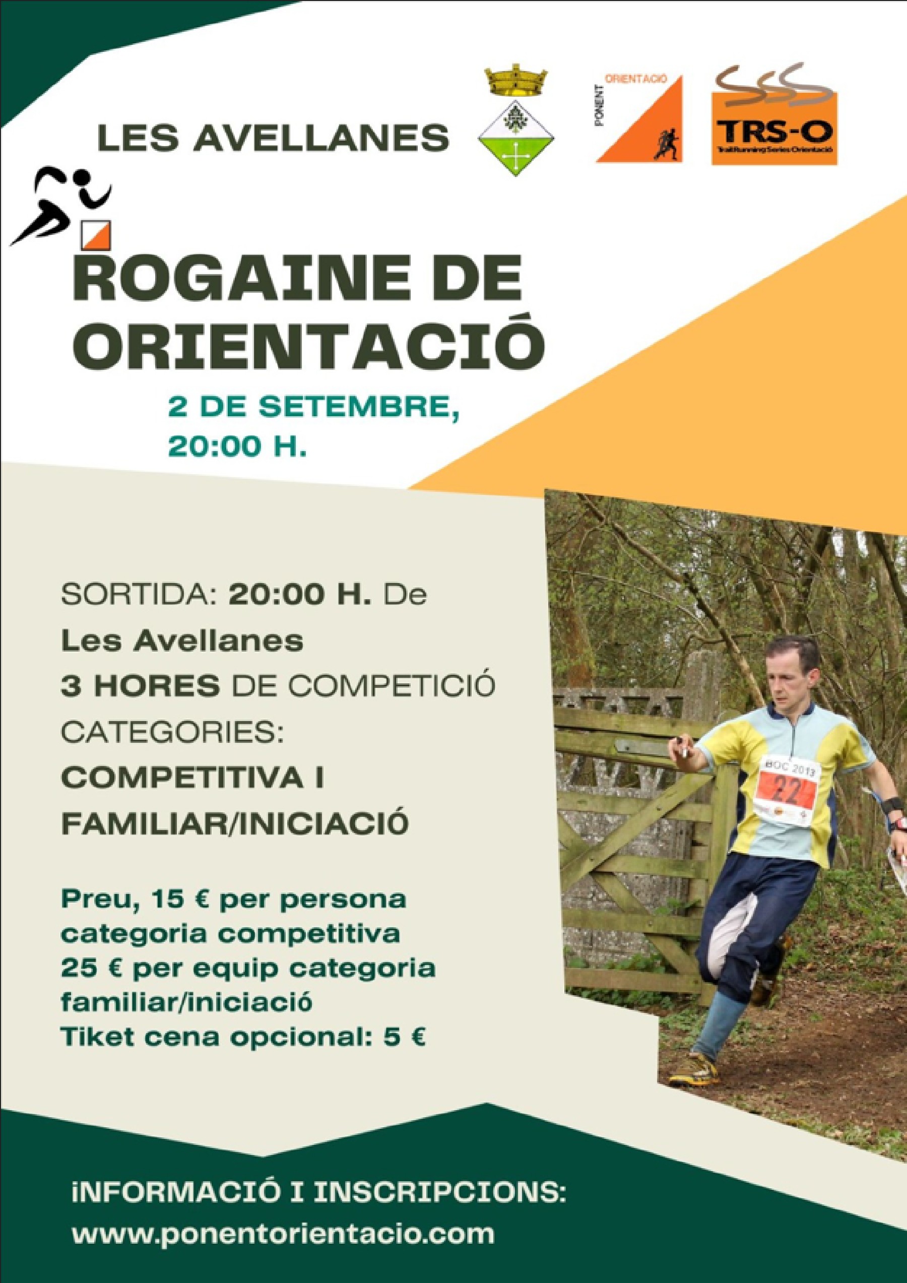 Aquest dissabte 2 de setembre tindrà lloc a Les Avellanes un rogaine d'orientació. Proposa dues categories, per a participants en competició, i per a equips o famílies que es vulguin iniciar en aquest esport