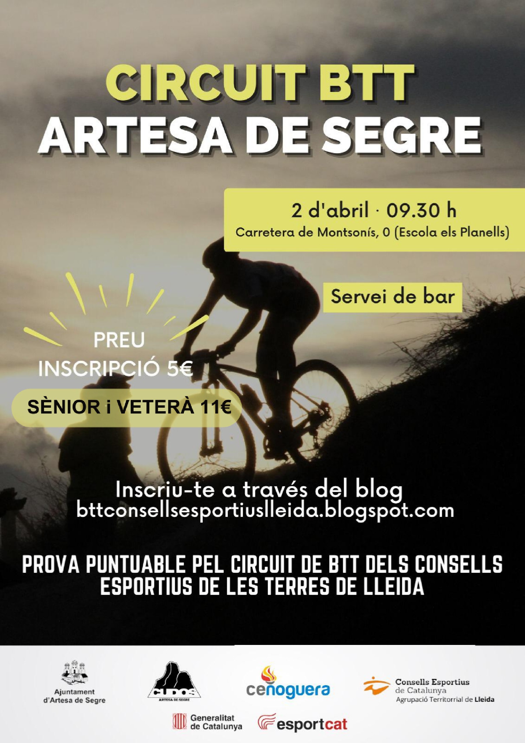 El Consell Esportiu de la Noguera, amb la col·laboració de l'Ajuntament d'Artesa de Segre i del Club Cudós d'Artesa de Segre, organitzen aquest diumenge la segona prova del Circuit Lleidatà de BTT