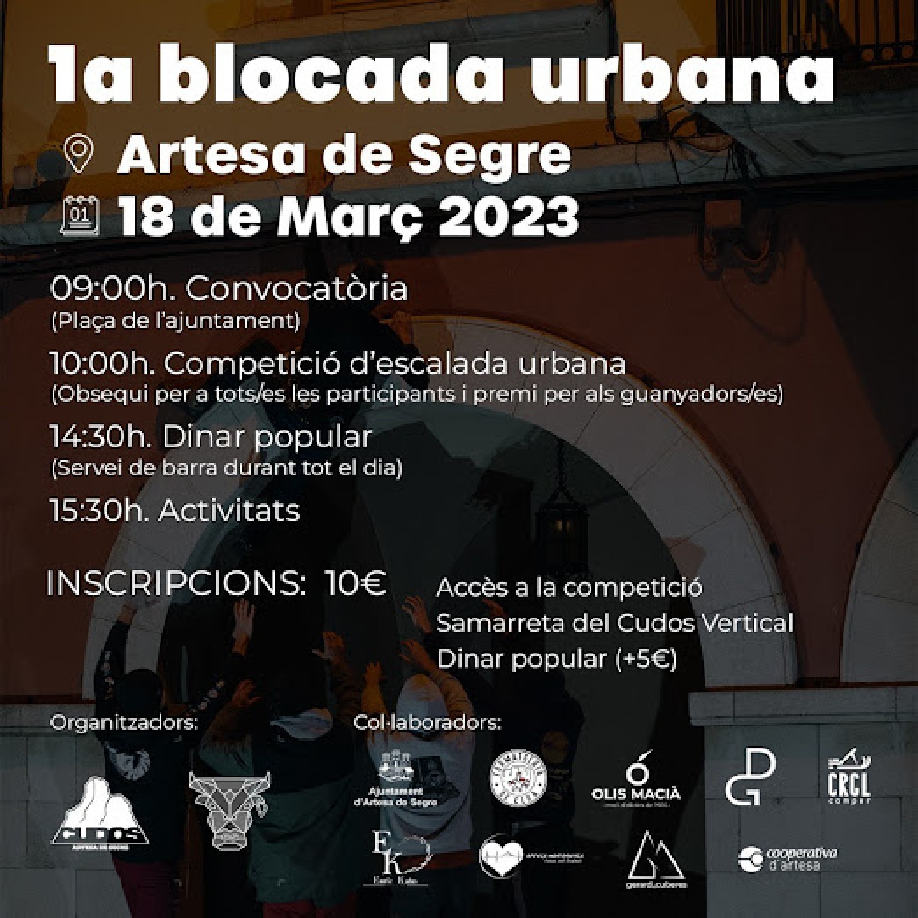 Artesa de Segre prepara la seva 1a Blocada Urbana, que es realitzarà el 18 de març. Es tracta d'una competició d'escala urbana on els participants mostraran les seves habilitats per façanes de diferents edificis del municipi