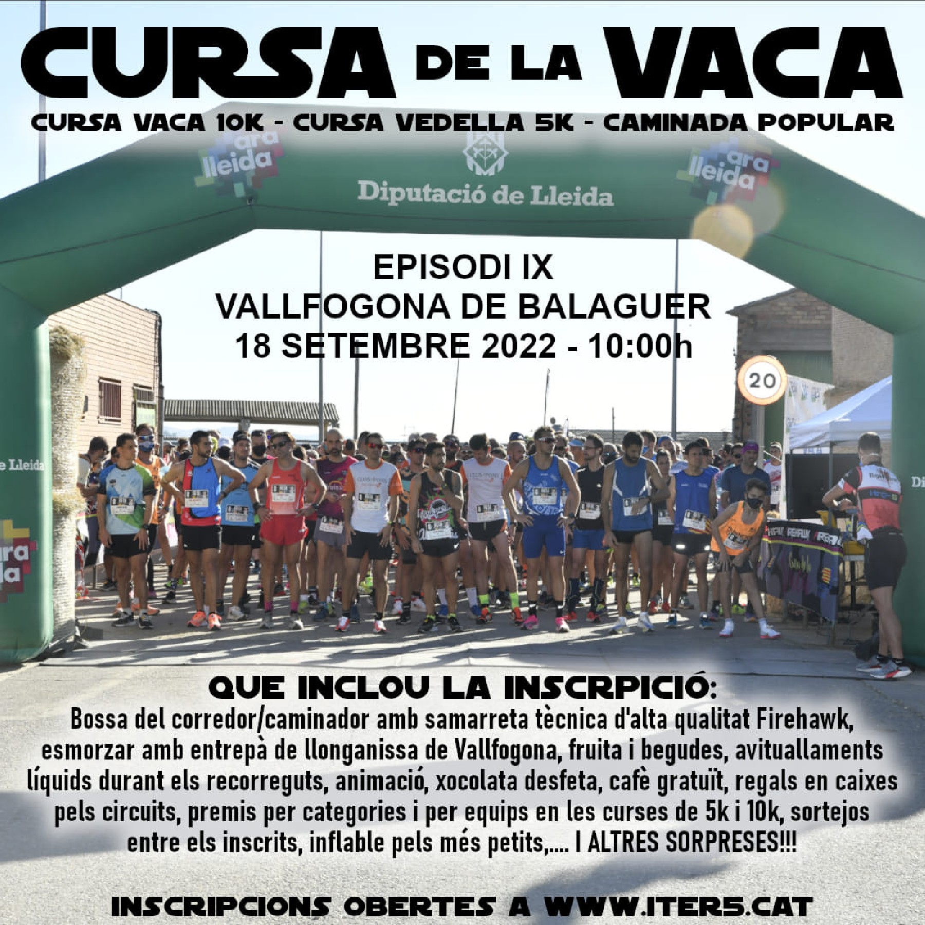 El pròxim 18 de setembre es celebrarà la IX edició de la Cursa de la vaca a Vallfogona de Balaguer, amb les modalitats de 10 i 5 km, i una caminada de 5 km no competitiva. Les inscripcions són obertes