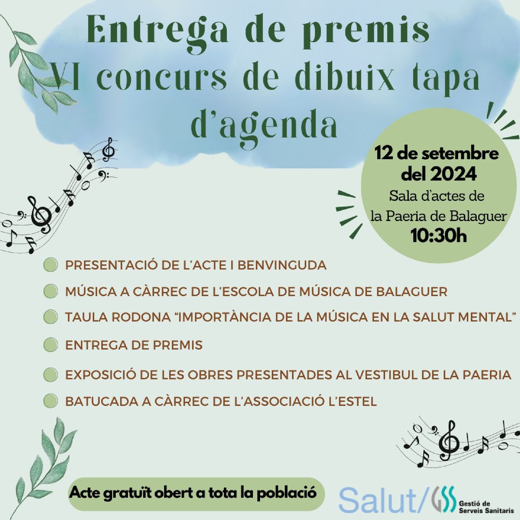 Aquest dijous es realitzarà a Balaguer l'acte d'entrega de premis del VI concurs de dibuix Tapa d'Agenda, que organitza el Servei de Rehabilitació Comunitària