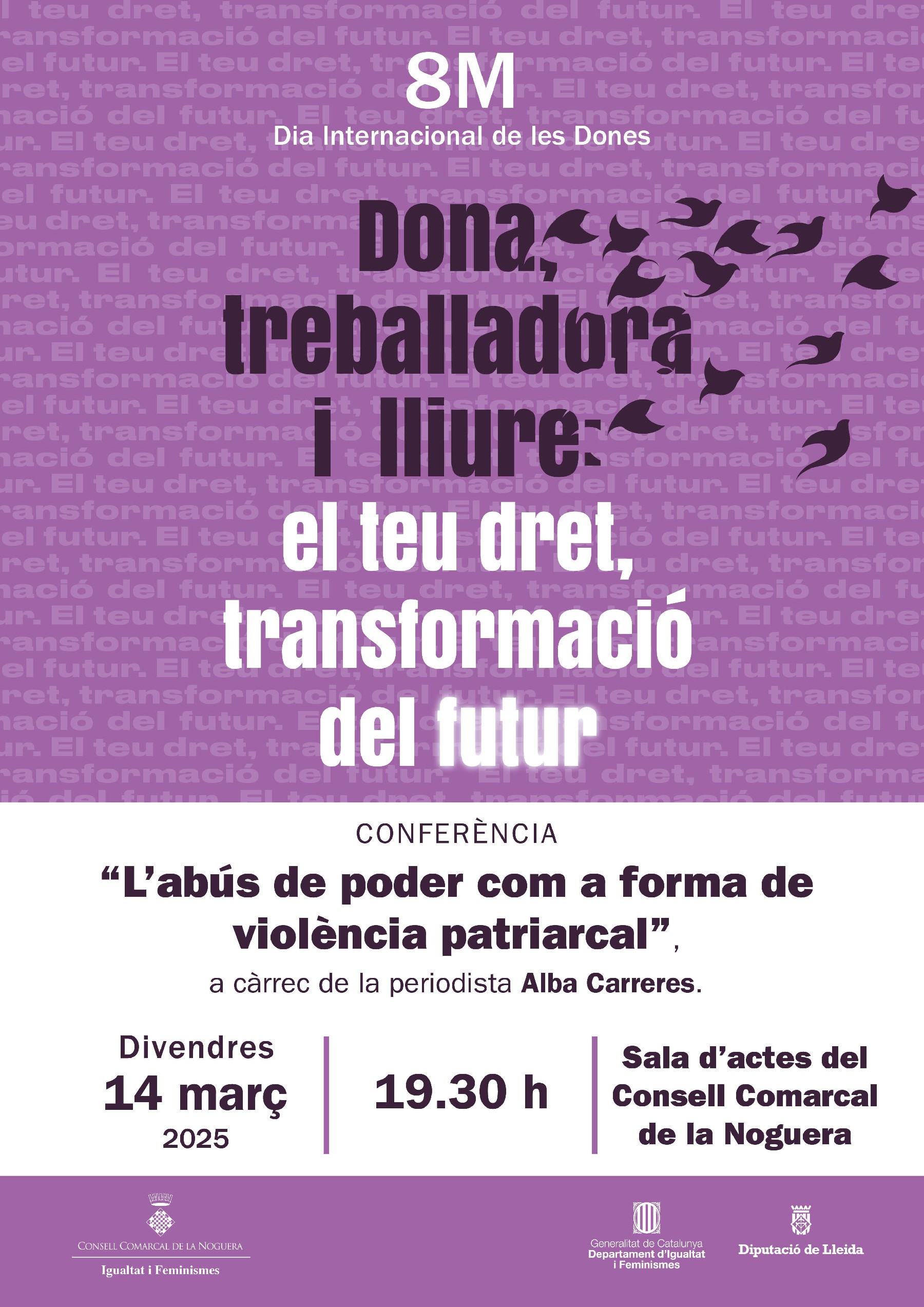 Conferència sobre l'abús de poder en el marc del 8M aquest divendres al Consell Comarcal de la Noguera