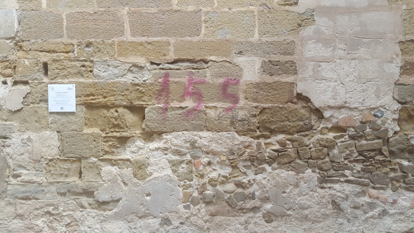 Noves pintades en el patrimoni de Balaguer. Fa uns dies s'han tornat a fer pintades amb el '155'. Aquest cop s'ha vist afectada la façana del claustre del convent de Sant Domènec.