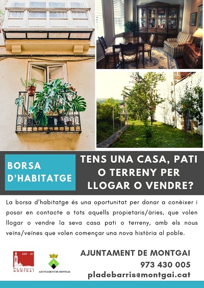 L'ajuntament de Montgai promociona una borsa d'habitatge per mirar de posar en contacte els propietaris de cases, patis o terrenys amb possibles compradors a o llogaters