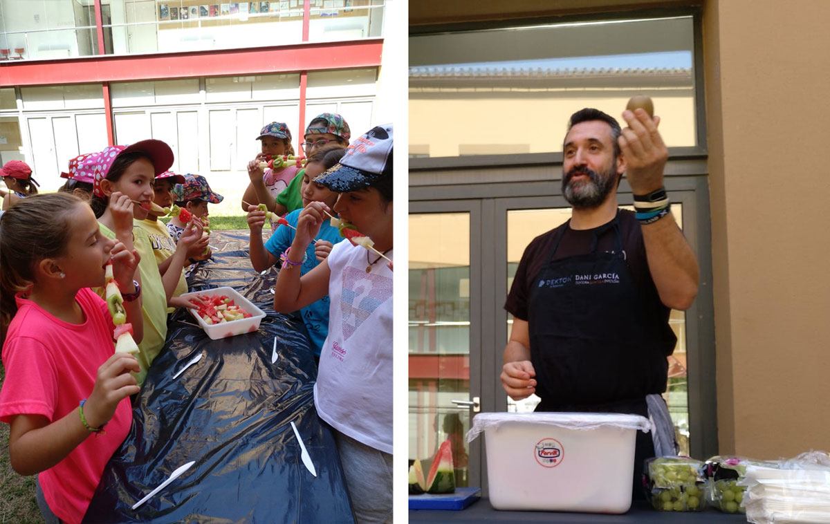 El Laboratori de les Professions d'Art Estiu arriba al final. Delfí Solsona ha ensenyat avui als infants com fer broquetes de fruita en aquesta darrera setmana dedicada a la cuina.