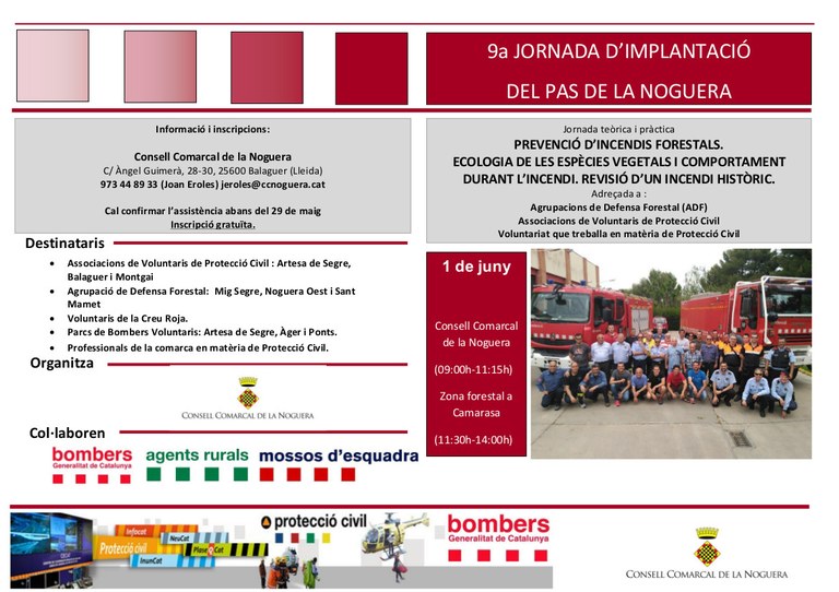 El Consell Comarcal de la Noguera celebra la 9a Jornada d'Implantació del Pla d'Assistència i Suport en matèria de Protecció Civil. Enguany està centrada en la prevenció dels incendis forestals i l'anàlisi d'un foc històric a Sant Llorenç