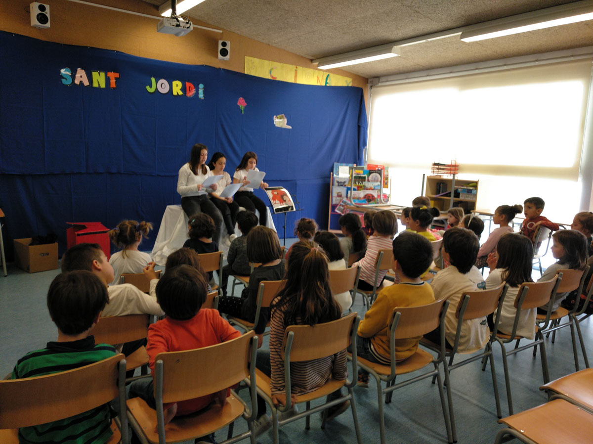 L'escola Mont-roig celebra la diada de Sant Jordi per fomentar el gust per la lectura. A més de la visita a les parades i l'assistència a l'obra de teatre de la plaça Mercadal es van fer la IX Marató de contes i el 1r Festival Escenàrik