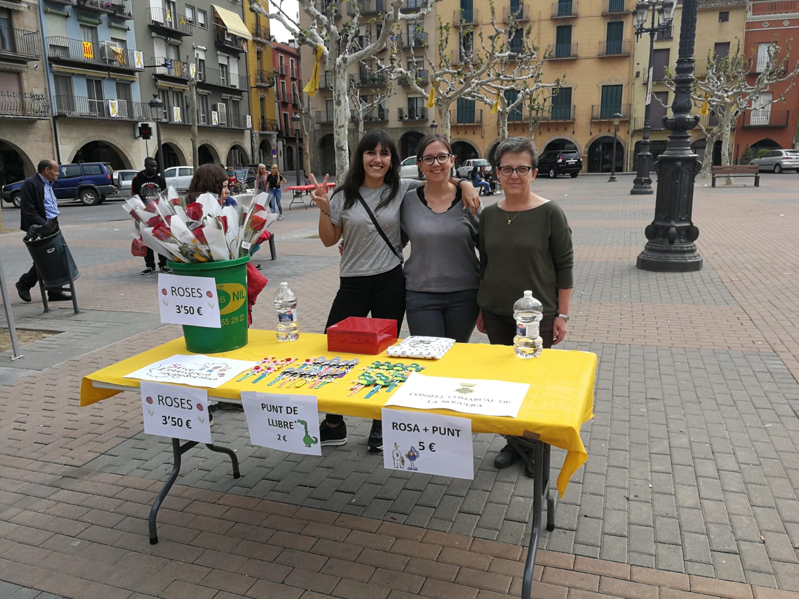 El Servei d'Intervenció Socioeducativa del Consell Comarcal de la Noguera munta una paradeta per Sant Jordi
