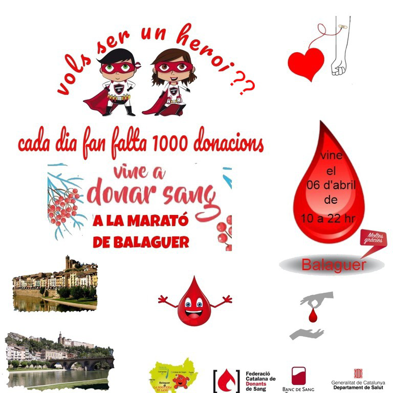 Aquest dissabte de 10 del mati a 10 de la nit, tindrà lloc una 'Marató donació de SANG' a l'Ajuntament de Balaguer.