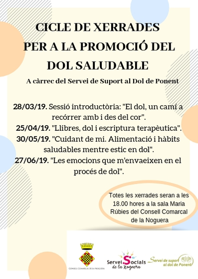 Avui 28 de març tindrà lloc la sessió introductòria 'El dol, un camí a recórrer amb i des del cor'. Es tracta de la primera de les xerrades del cicle per la promoció del dol saludable que es faran al Consell Comarcal de la Noguera