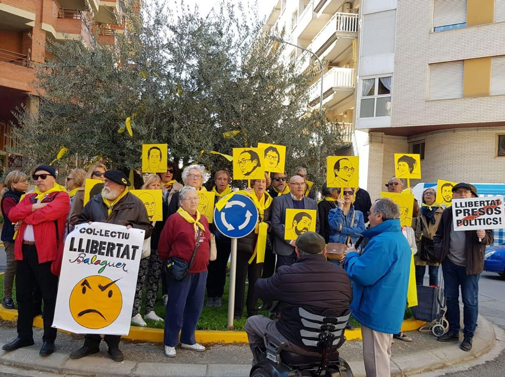 Avui s'ha reunit novament el Col·lectiu Llibertat de Balaguer per fer la seva marxa sorollosa, que ha anat des del Mercadal fins a la plaça de l'olivera del carrer Barcelona, on s'han renovat els llaços grocs existents