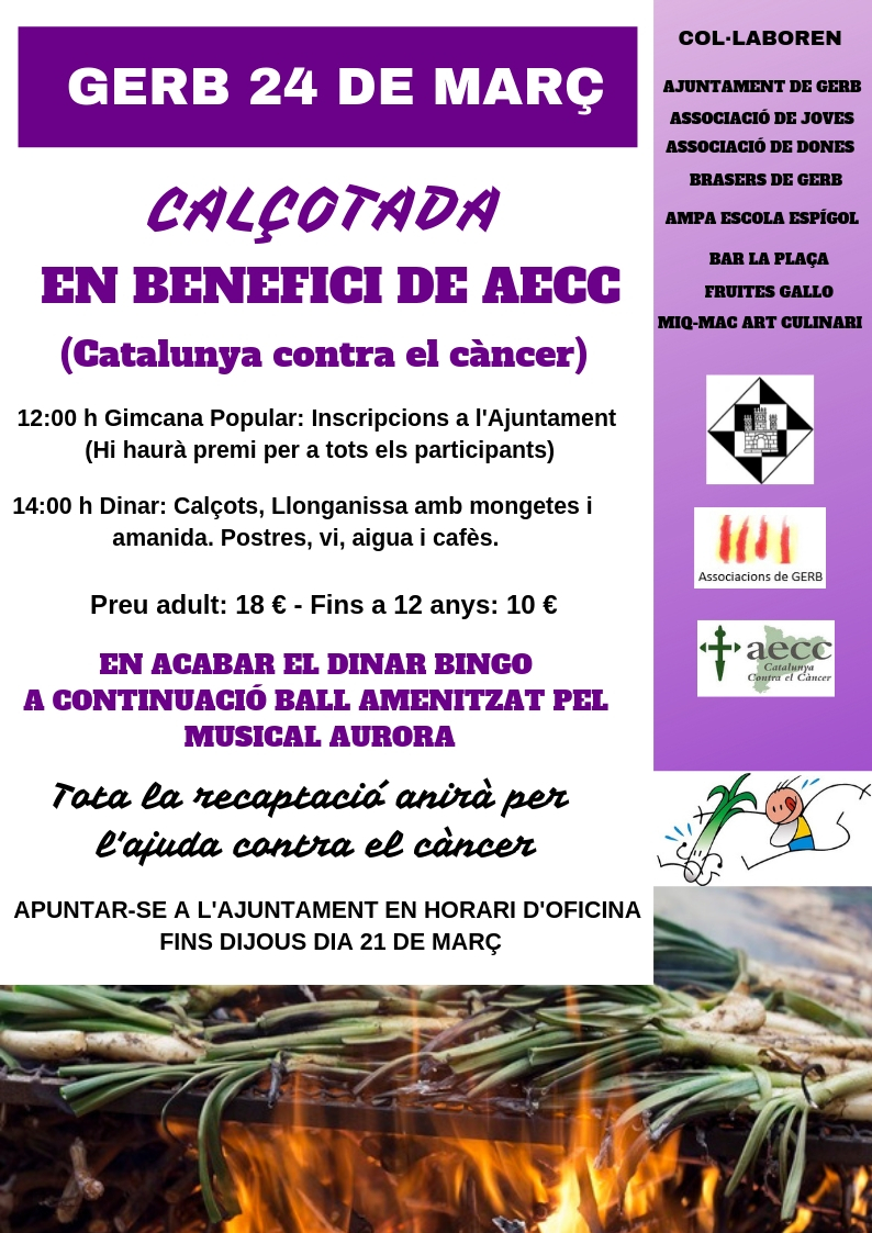 Gerb ha preparat per aquest diumenge 24 de març una calçotada solidària en benefici de l'AECC, Catalunya contra el càncer
