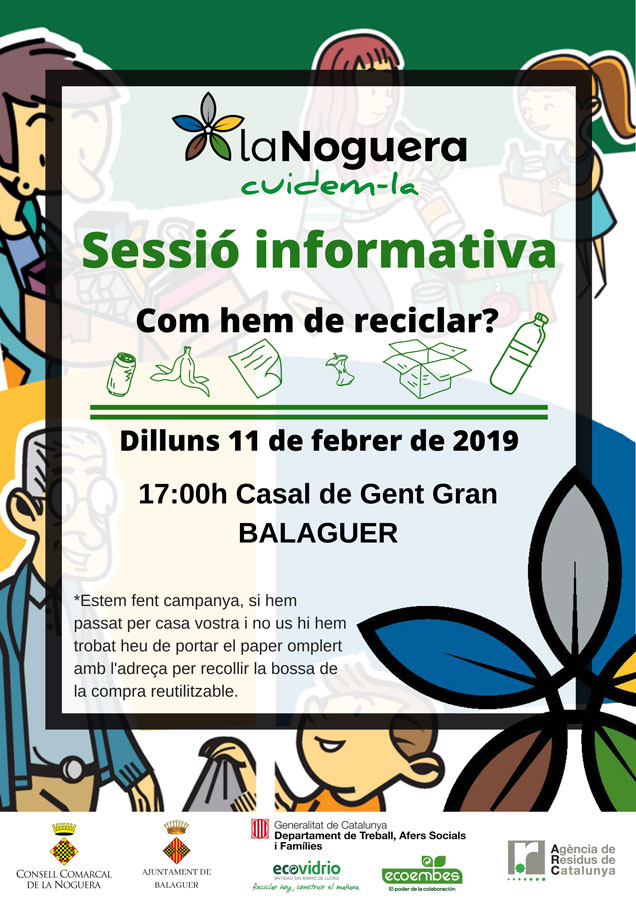 El Casal de la Gent Gran serà escenari d'una de les sessions informatives sobre com hem de reciclar. Serà el proper dilluns 11 de febrer a les 5 de la tarda