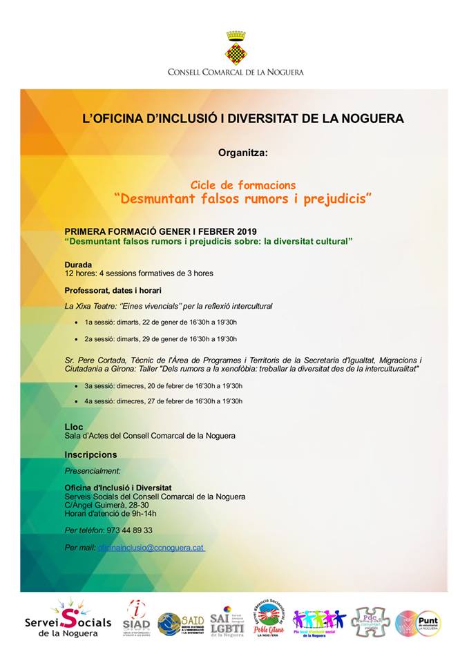 Els Serveis Socials del Consell Comarcal de la Noguera, organitzen unes sessions formatives per a professionals sota el títol 'Desmuntem els falsos rumors i prejudicis sobre la diversitat cultural'