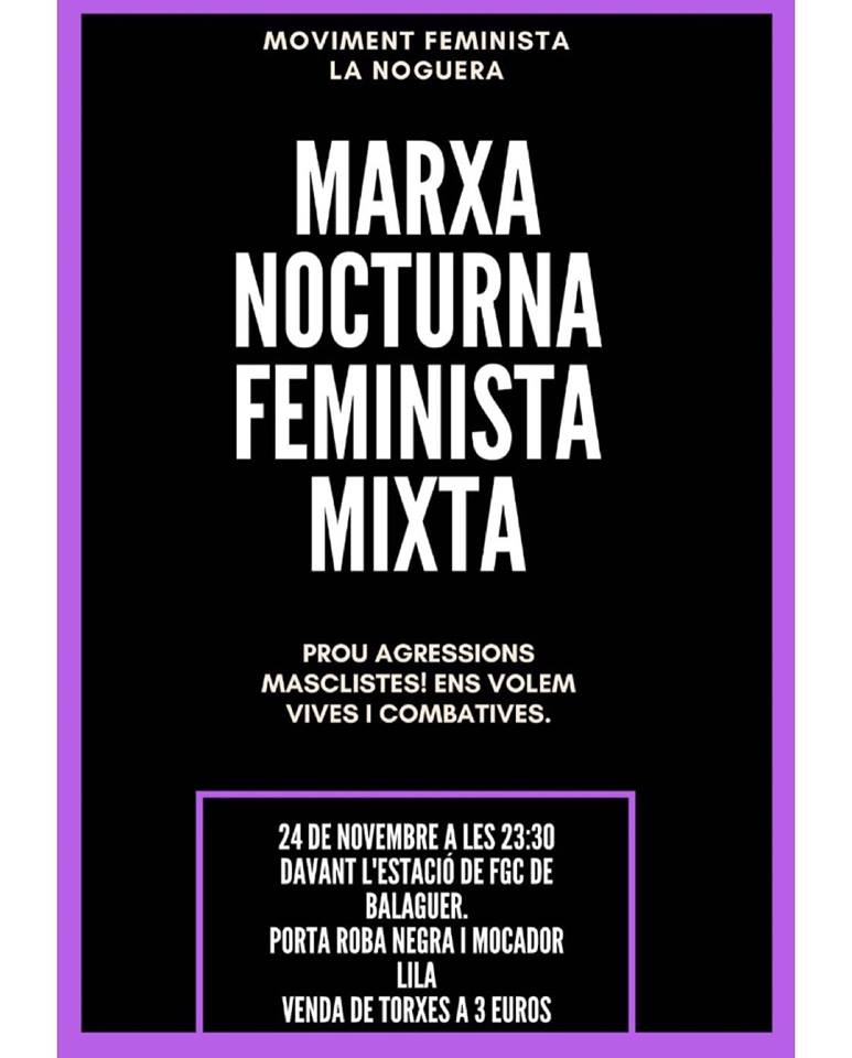 El Moviment Feminista de la Noguera organitza una marxa nocturna el proper dissabte a la nit per reclamar que s'acabin les agressions masclistes