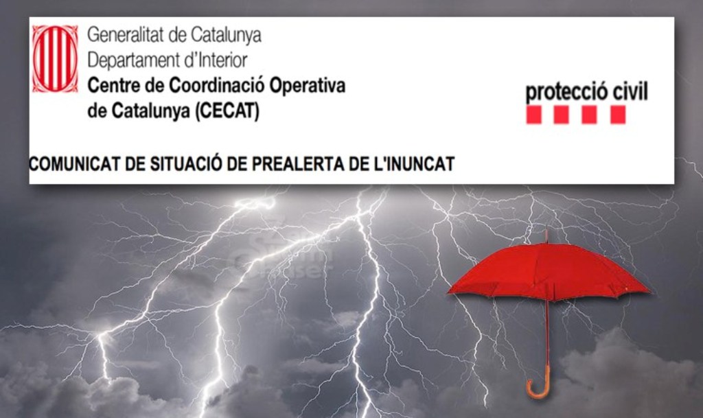 Protecció Civil activa l'Alerta del Pla INUNCAT per la previsió de precipitacions intenses. L'episodi de pluges començarà aquesta tarda/vespre i s'allargaran durant tota la nit i demà al matí
