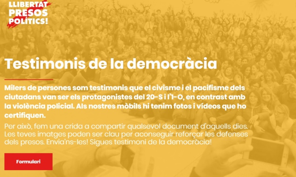 Òmnium activa un web per recollir imatges del 20-S i l'1-O. L'entitat vol acreditar el 'pacifisme ciutadà' i que l'única violència 'va ser la policial'