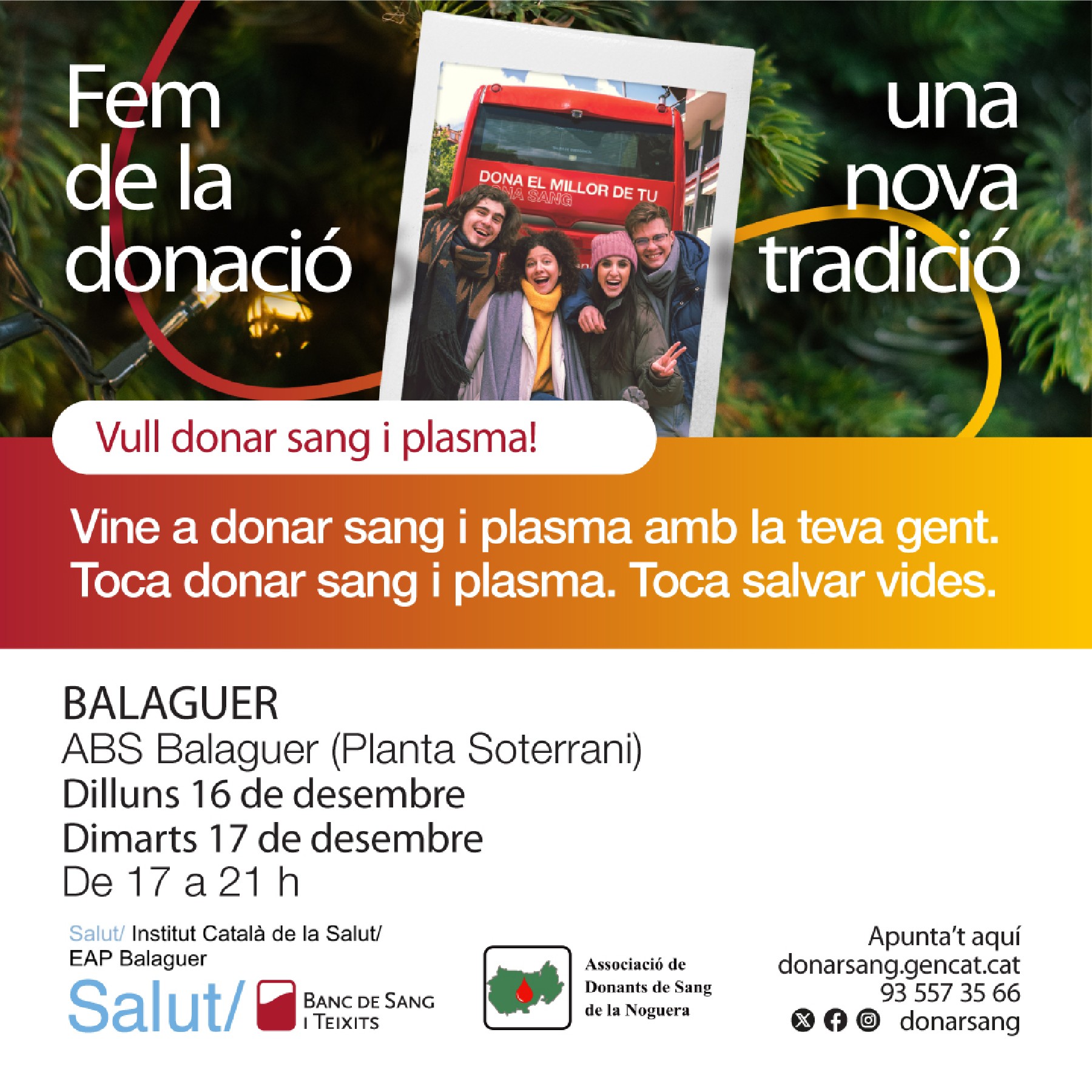 El Banc de Sang fa una crida a tothom a donar sang amb la campanya 'Fem de la donació, una nova tradició'