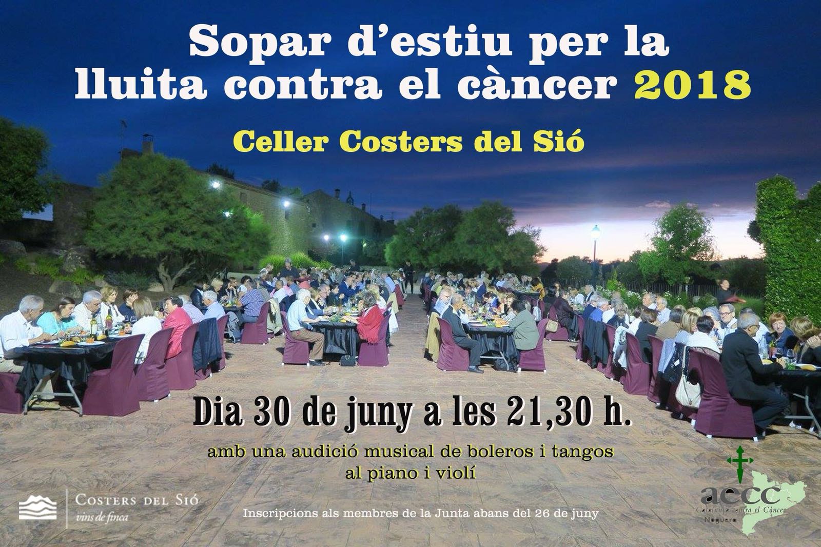 L'associació per la lluita contra el càncer de la Noguera organitza aquest proper dissabte dia 30 de juny el Sopar d'estiu.