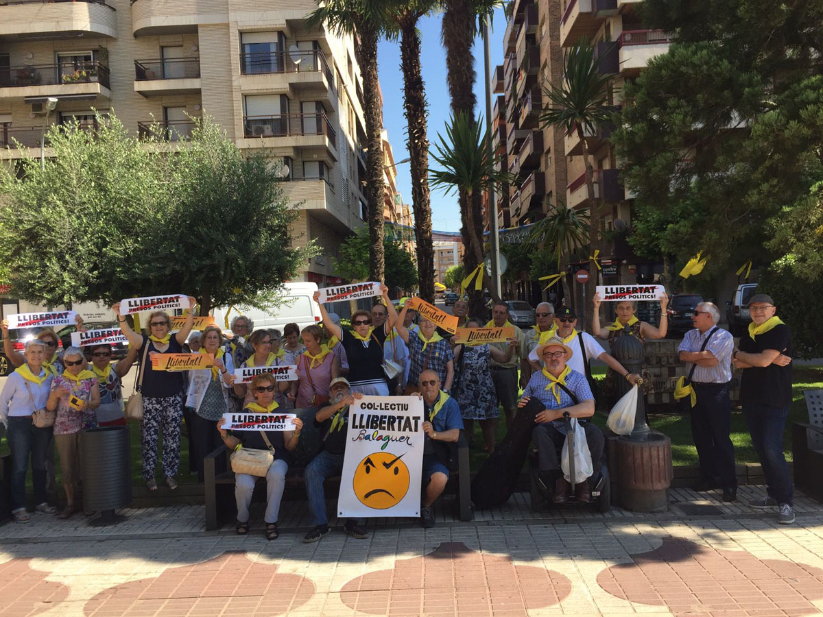 Avui s'ha tornat a reunir el Col·lectiu Llibertat de Balaguer, com és habitual els dijous, en una trobada on s'han cantat garrotins reivindicatius i s'han posat llaços grocs a la Plaça de la Sardana.