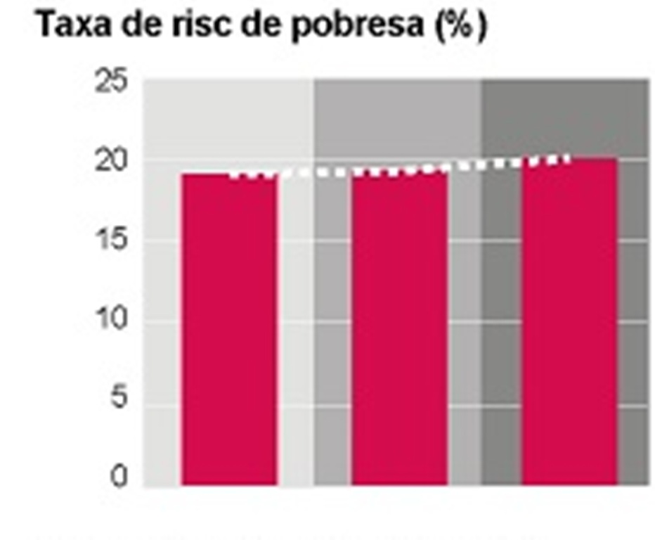 La taxa de risc de pobresa de la població de Catalunya se situa en el 20,0% l'any 2017. El 7,0% de la població declara que arriba a fi de mes amb molta dificultat