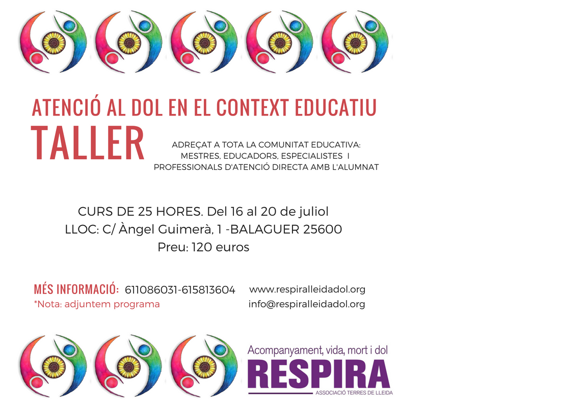 L'associació RESPIRA, dedicada a l'acompanyament en vida, mort i dol, realitzarà a Balaguer un curs especialment dirigit al personal docent i educadors per tal de preparar-los per afrontar la mort sobtada d'algun membre de l'alumnat o professorat.