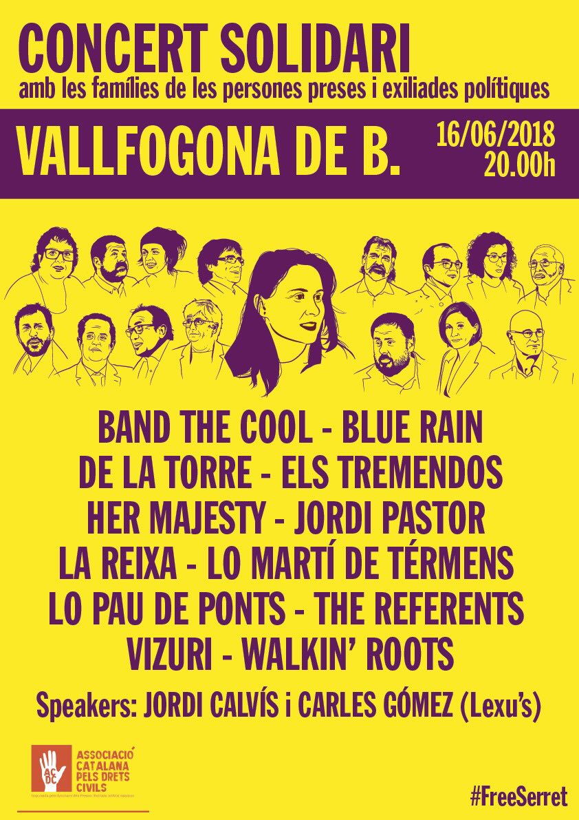 Vallfogona de Balaguer acollirà un concert en solidaritat amb Meritxell Serret i la resta de presos i exiliats catalans. Serà demà dissabte i comptarà amb una dotzena d'actuacions com ara les de Tremendos, Lo Pau de Ponts o Lo Martí de Térmens.