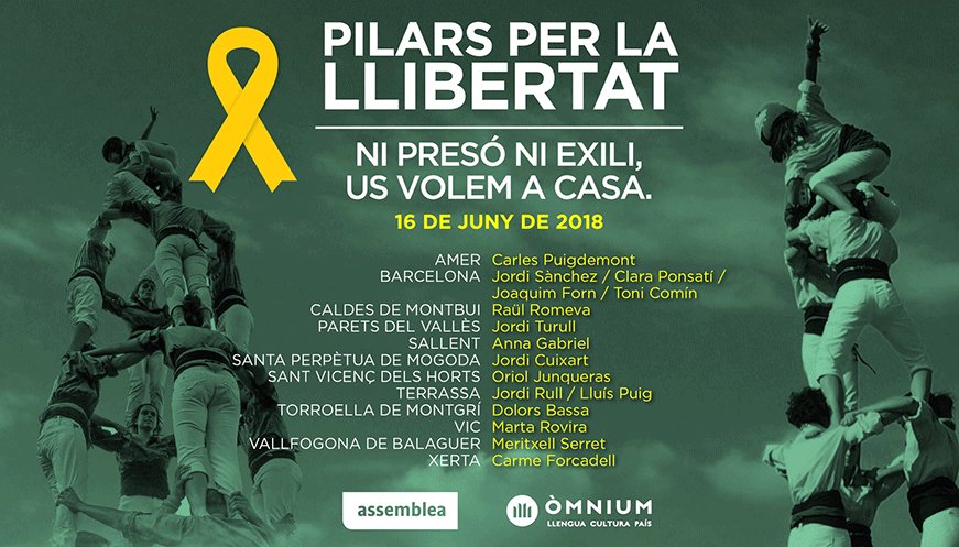 L'ANC i Òmnium aixecaran aquest dissabte pilars als municipis dels 'presos polítics i exiliats'. Les entitats també organitzen una concentració a la plaça Catalunya de Barcelona vuit mesos després de l'empresonament de Sànchez i Cuixart.
